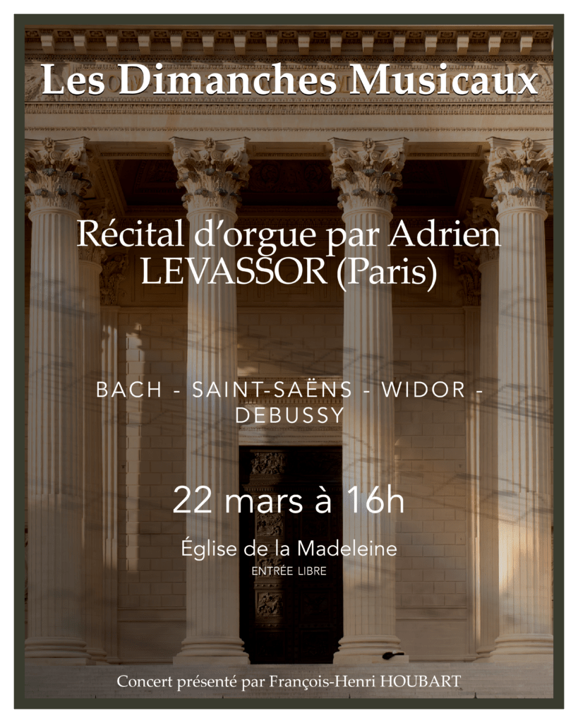 Dimanches Musicaux – Récital d’orgue par Adrien LEVASSOR (Paris)