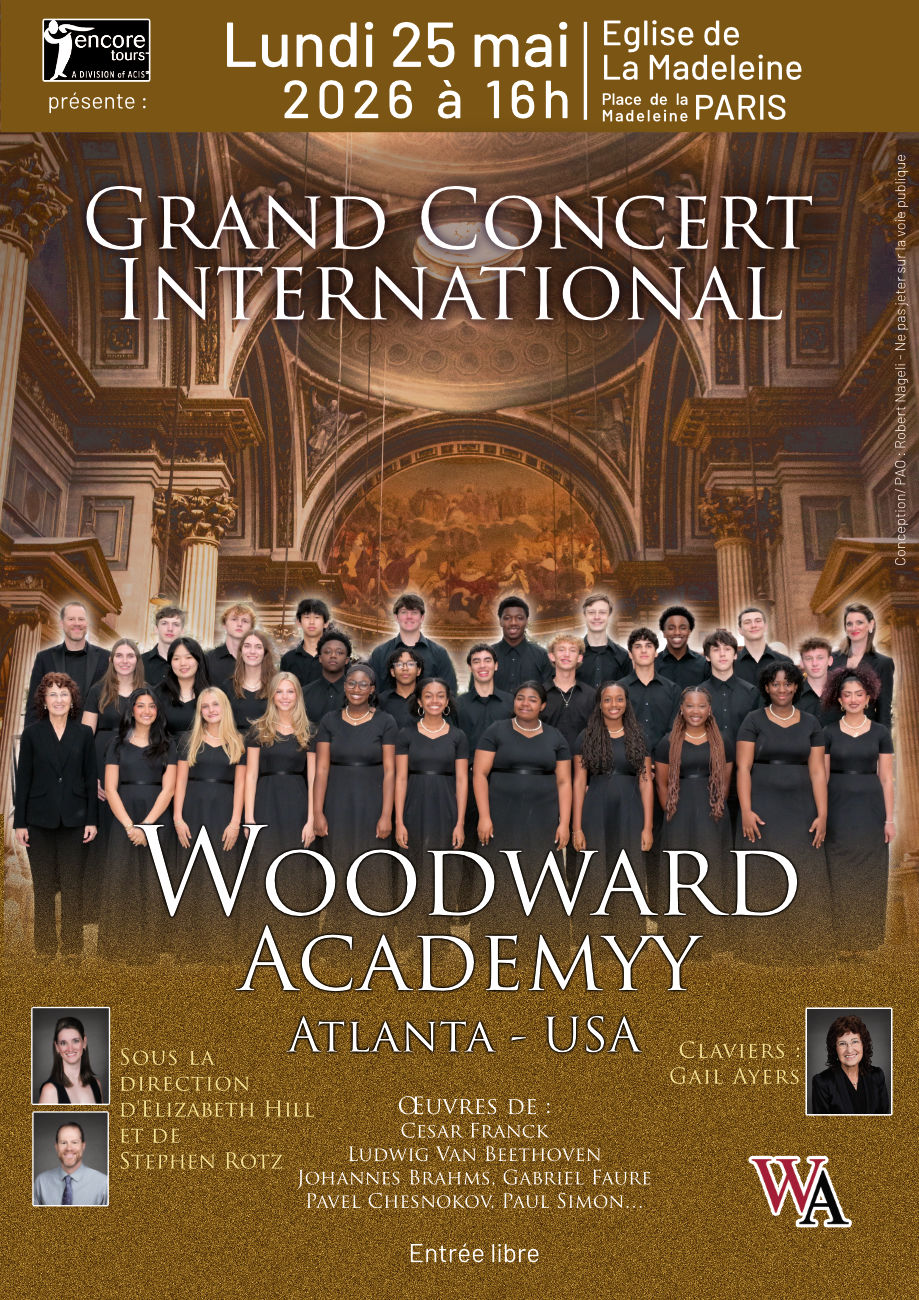 ✨ Lundi 25 mai 2026 à 16h, l’Église de la Madeleine accueillera le Woodward Academy Tour Choir, ensemble vocal américain de jeunes chanteurs reconnu pour la qualité de son travail et l’harmonie de ses voix, sous la direction de Stephen Rotz.