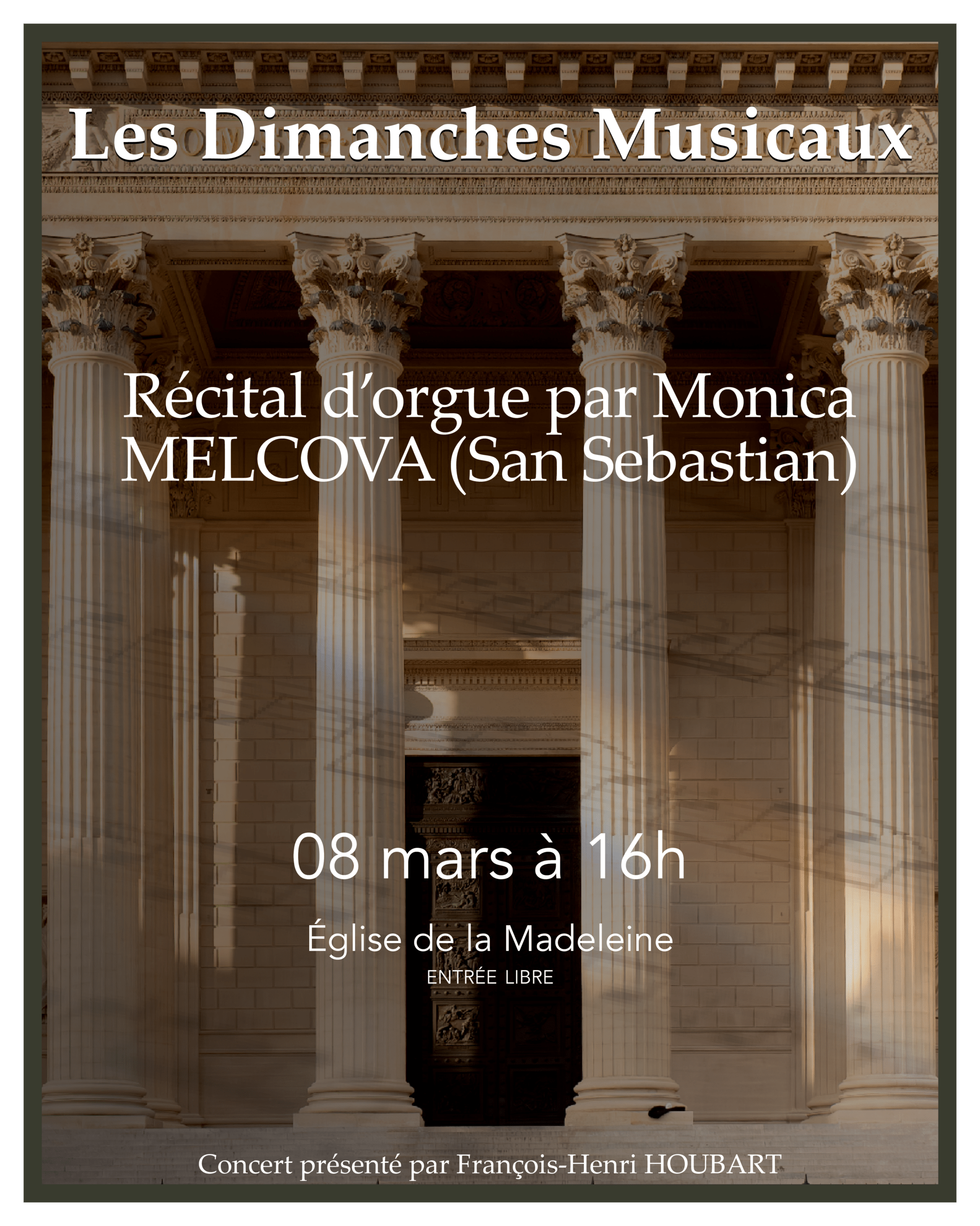 • Dimanches Musicaux – Récital d’orgue par Monica MELCOVA (San Sebastian)