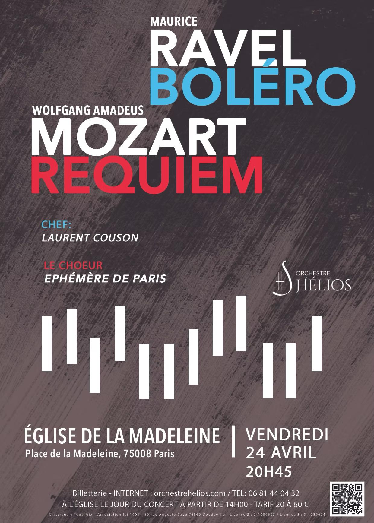 Eglise de la Madeleine Paris Place de la Madeleine, Paris, France, FranceRequiem de Mozart et Boléro de Ravel Orchestre Hélios Le choeur Ephémère de Paris Direction : Laurent Couson
