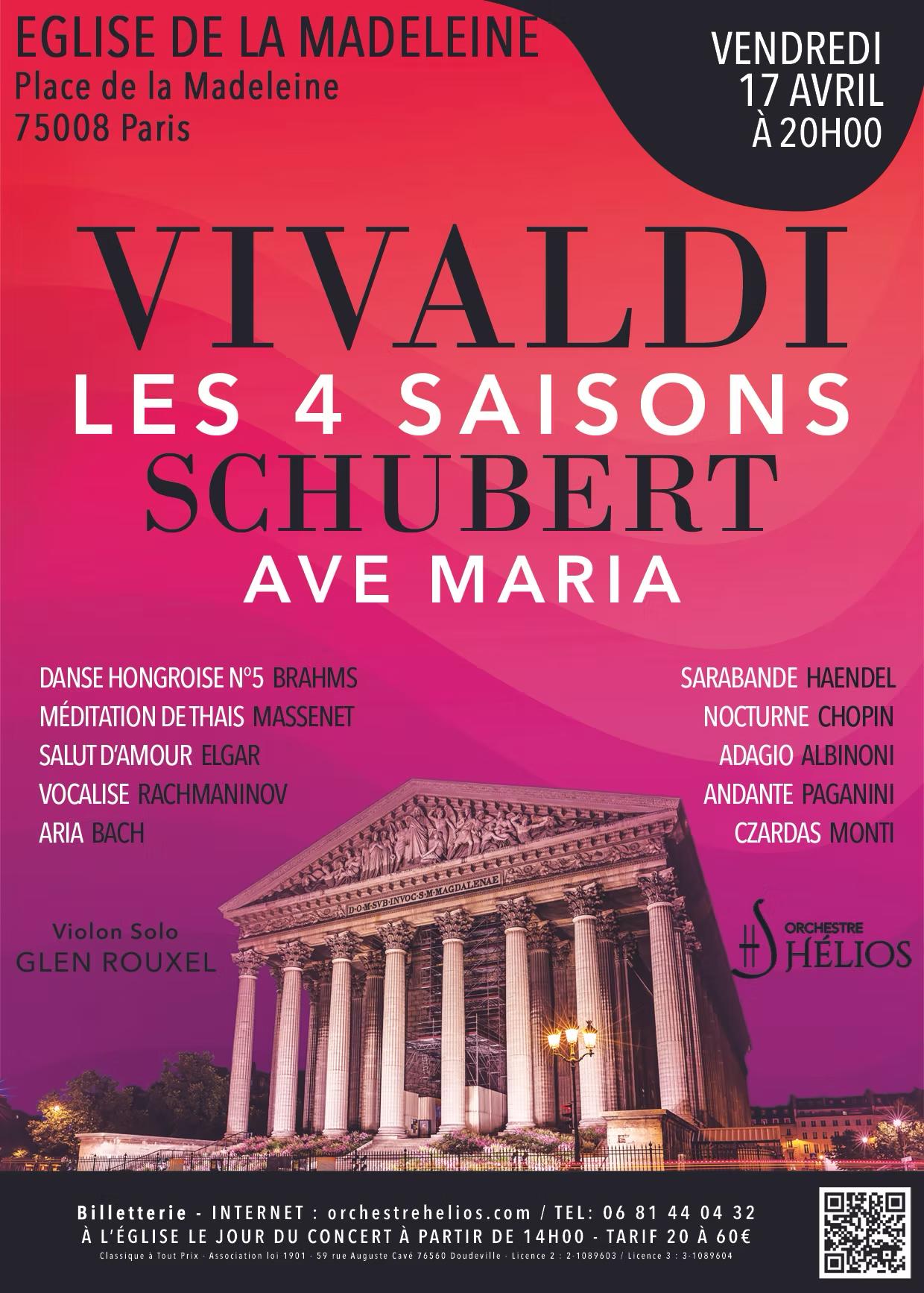 Les 4 Saisons de Vivaldi « Été » et « Hiver », « Sarabande » de Haendel, « Méditation de Thaïs » de Massenet, « Aria » de Bach, « Ave Maria » de Schubert, « Vocalise » de Rachmaninov, « Adagio in G Minor » de Albinoni, « Danse Hongroise N°5 » de Brahms, « Andante Cantabile » de Paganini, « Nocturne» de Chopin, « Salut d’Amour » de Elgar, « Czardas » de Monti Les quatre saisons d’Antonio … Lire la suite de« Les 4 Saisons de Vivaldi, Ave Maria et Célèbres Adagios »