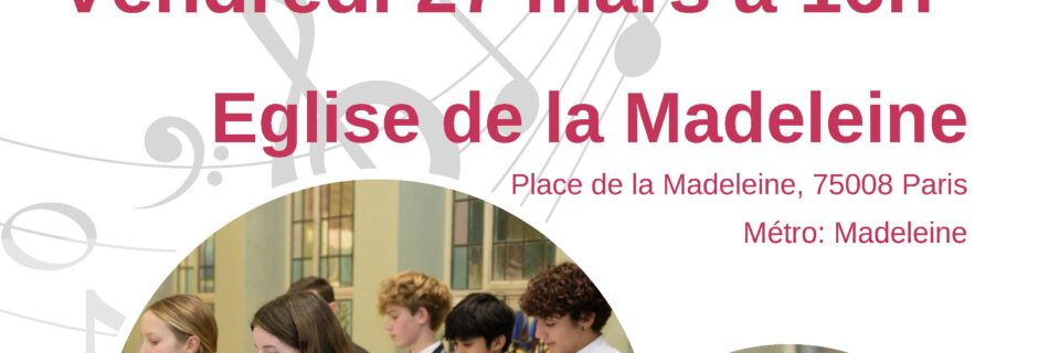 CONCERT – lundi 2 mars 2026 à 16h00 EFFINGHAM SCHOOLS TRUST Les chœurs de Cranmore, Manor House et St. Teresa’s Schools (Surrey, UK)Le programme comprend d’une sélection exquise d’œuvres chorales …