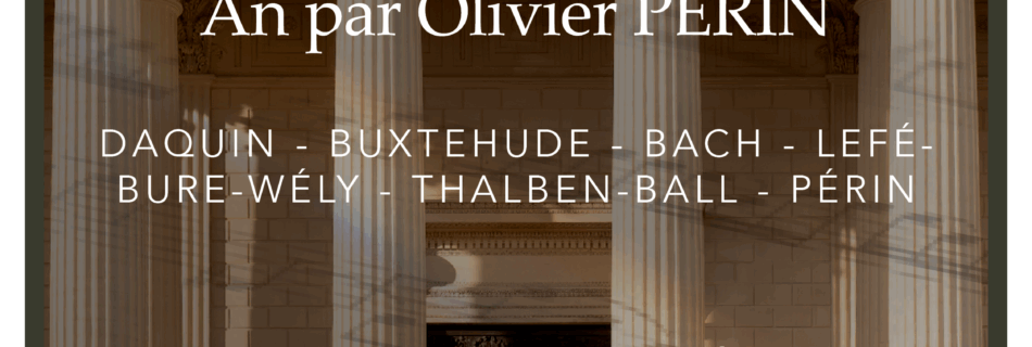 Louis Claude DAQUINNoëls VI & II Dietrich BUXTEHUDEPrélude, Fugue et ChaconneChoral « In dulci jubilo » Johan Sebastian BACHPrélude et Fugue en Mi bémol majeurPastorale Georges THALBEN-BALLElégie Louis James Alfred LEFEBURE-WELYSortie en …
